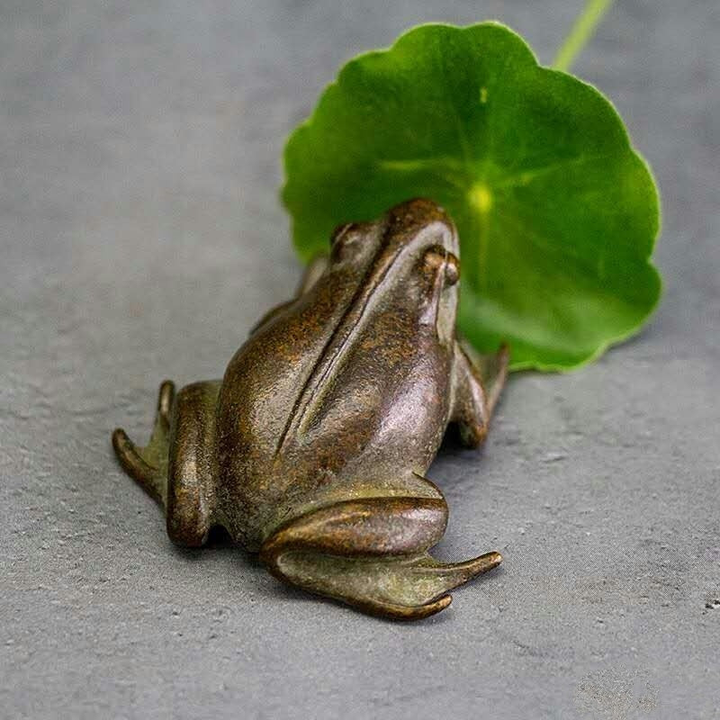 Solid Copper Big Frog Tea Pet Desktop Ornament